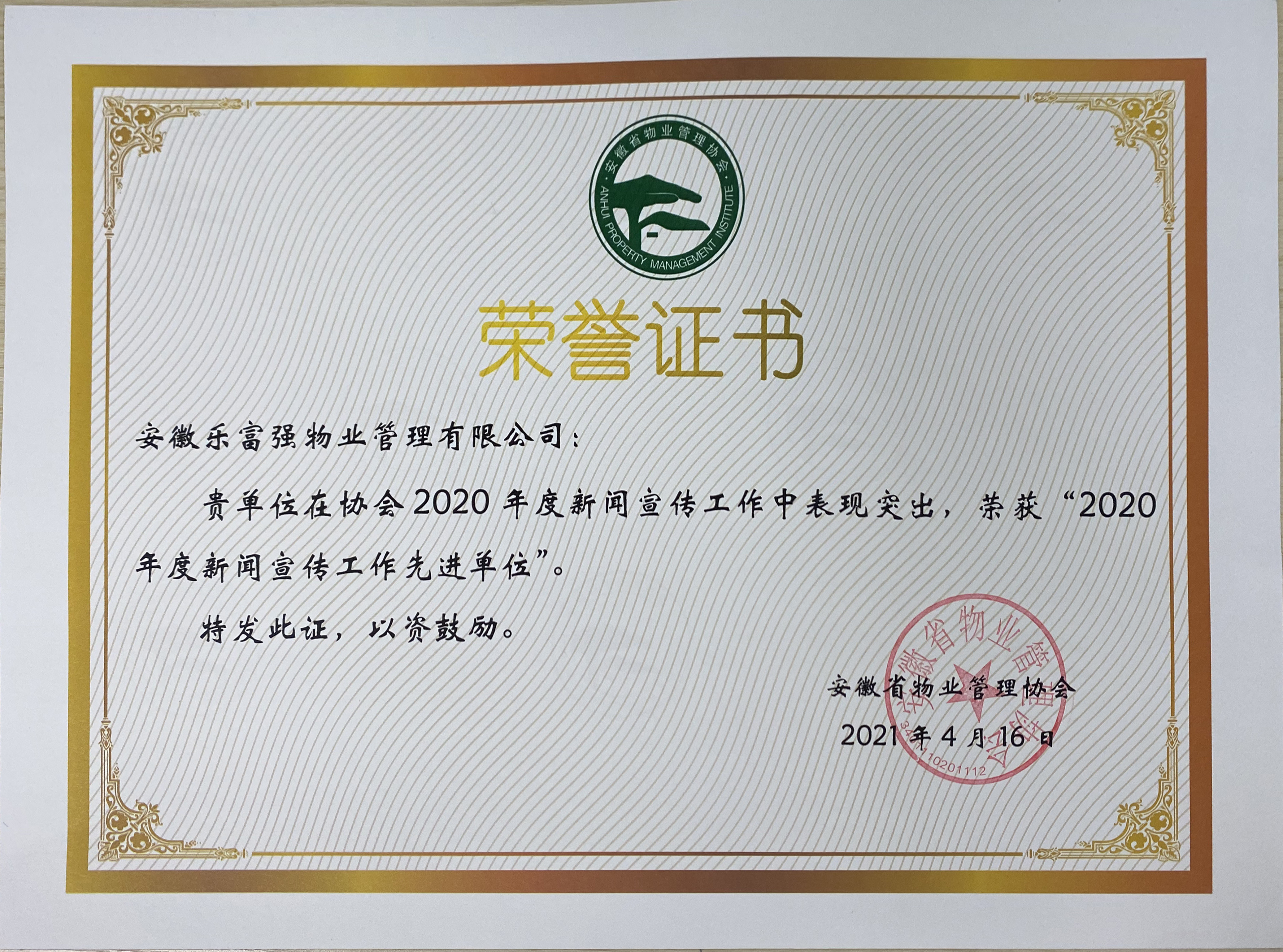 被大会授予“2020年度新闻宣传工作先进单位”荣誉称号,,,,,品牌负责人查柳被授予“2020年度优秀通讯员”荣誉称号,,,,,这是对大丰国际物业新闻宣传工作的肯定和鼓励,,,,,更是彰显大丰国际物业品牌实力。。。。。