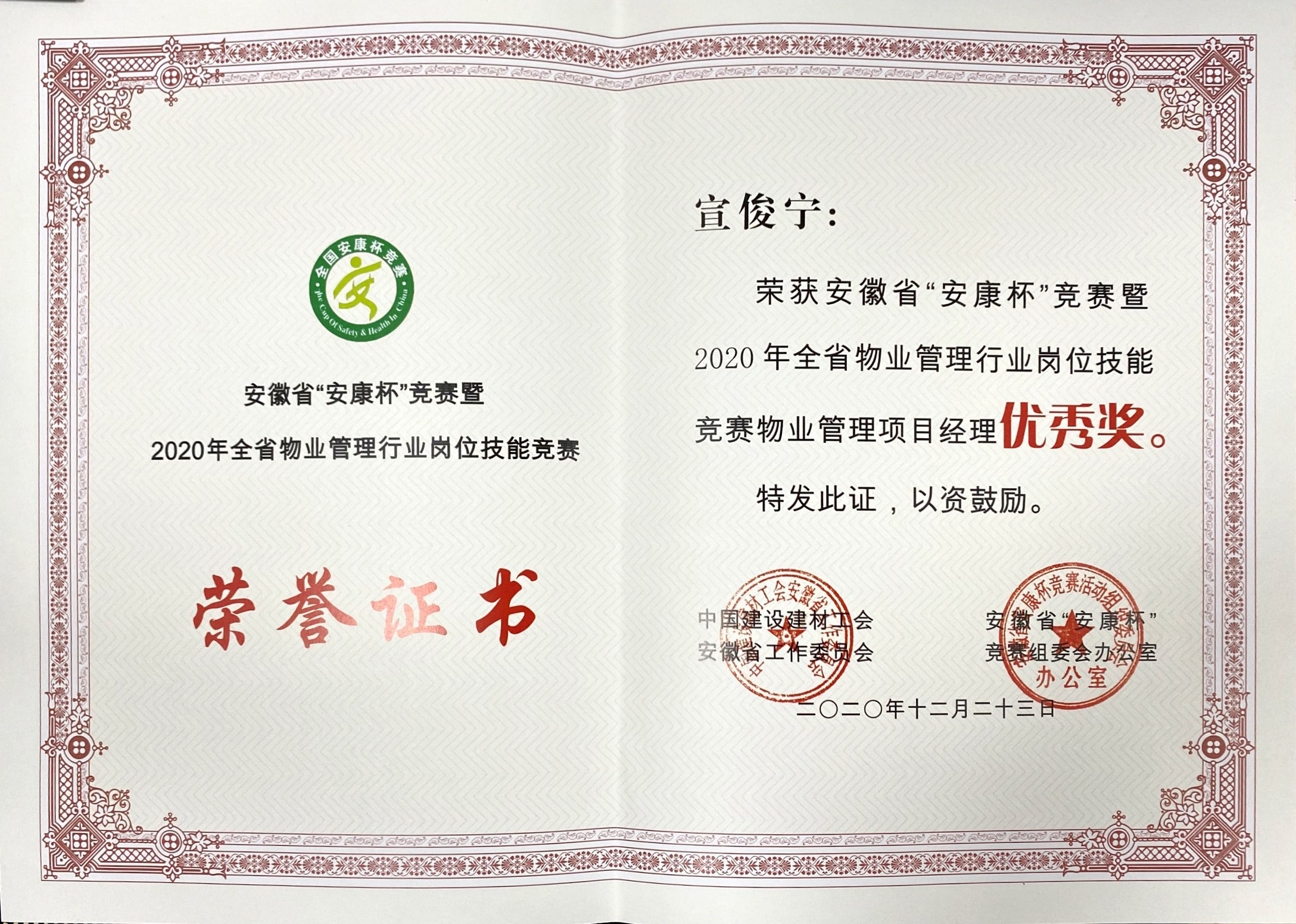 在安徽省“安康杯”竞赛暨2020年全省物业管理行业岗位技能竞赛中,,,,,大丰国际物业代表队在比赛中充分发挥了工匠精神和职业技能水平,,,,,彰显出严谨的工作态度,,,,,获得了出色的成绩。。。。。